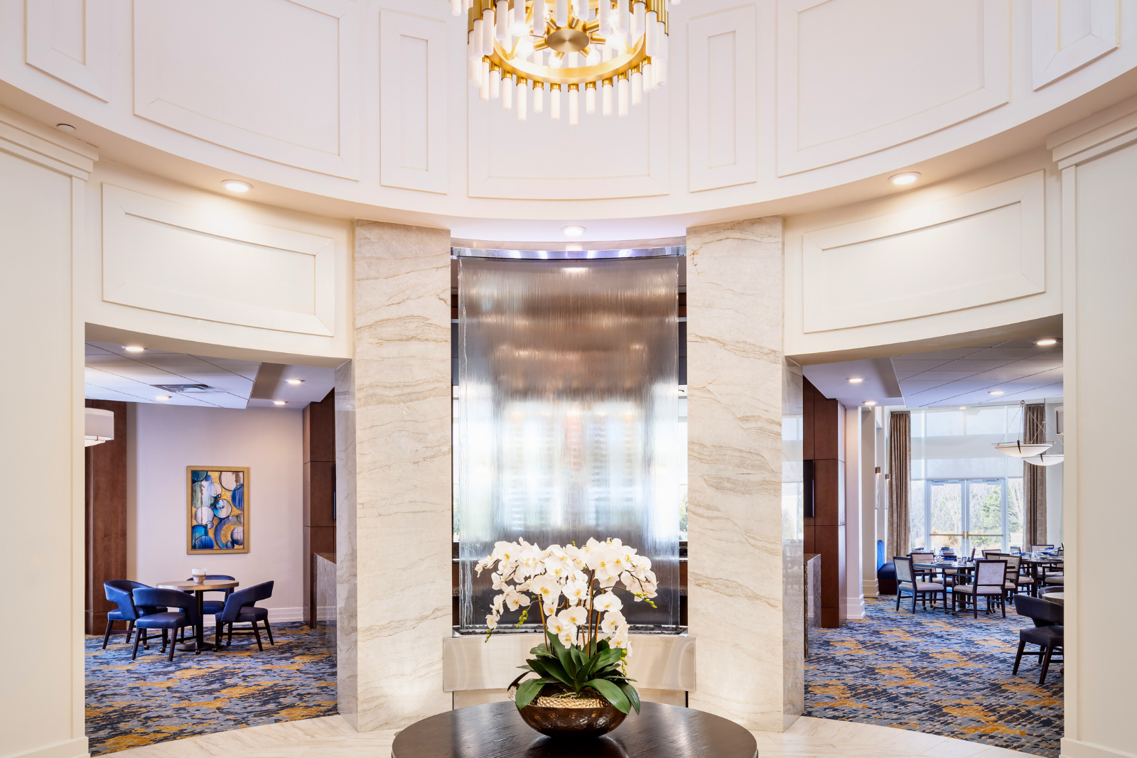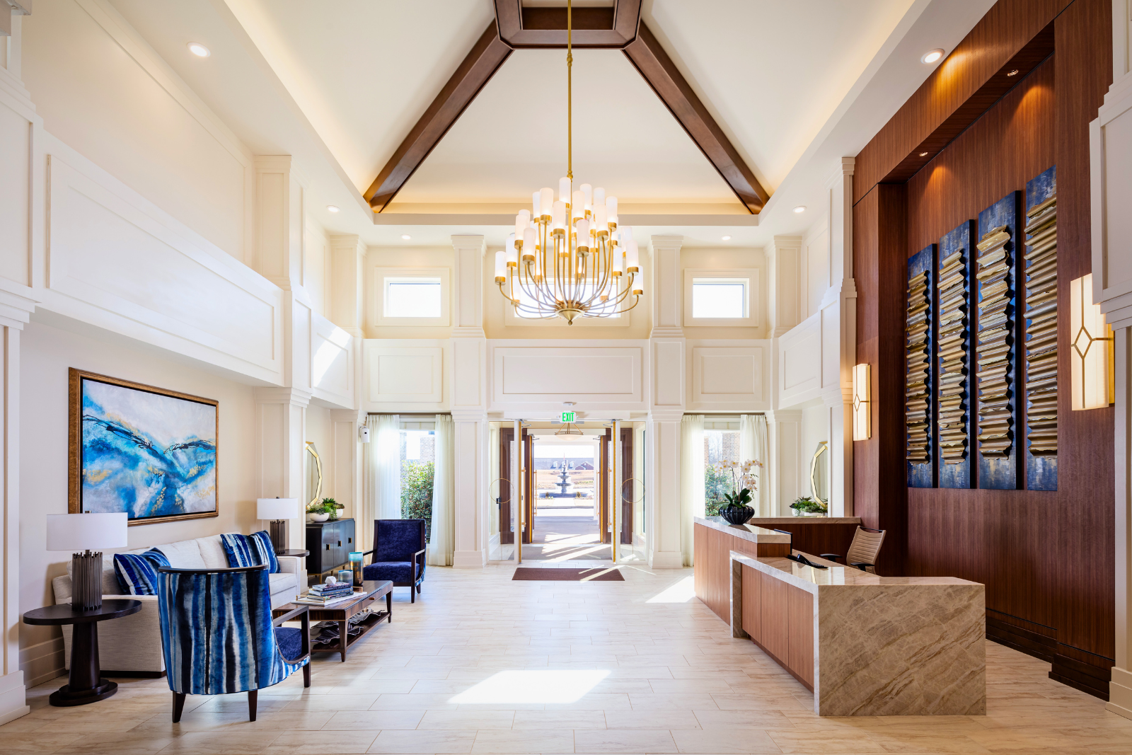 At Westhill Macon, residents find a beautiful, luxurious place to call home. From the moment residents arrive, they're welcomed by the comfortably classy design featuring a stunning promenade, cozy fireplace, signature water wall, saltwater pool, and cigar and scotch lounge. The on-site salon and spa with salt and LYT therapy, grand balconies, and inviting Southern-style outdoor spaces add elegance and comfort.